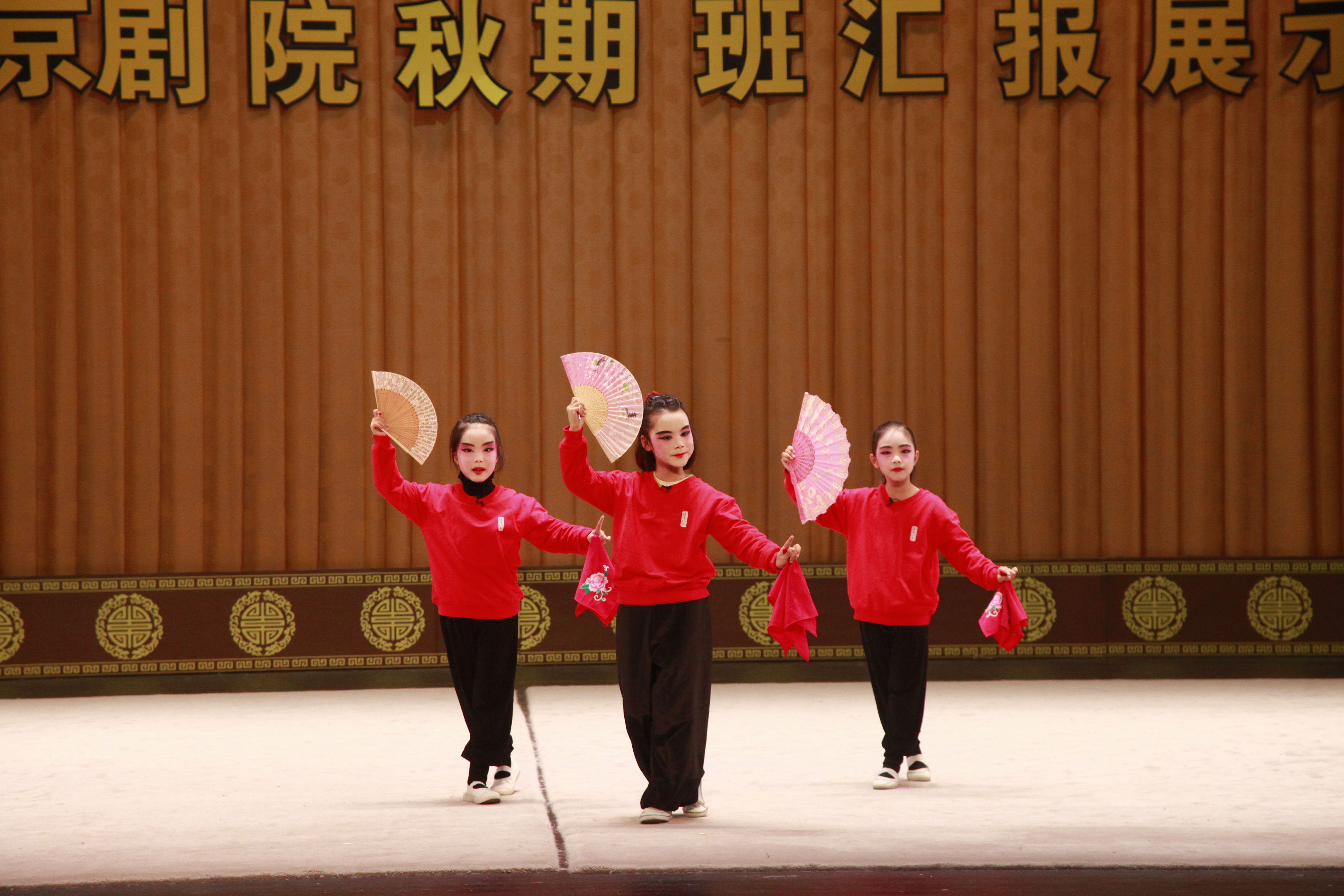 首先登场的是一群身着练功服的小学员,尽管学习时间不长,但他们的眼神专注而坚定,颇有几分专业范儿。在悠扬的胡琴伴奏下,孩子们展示着自己的基本功,唱、念、做、打“四功”,手、眼、身、法、步“五法”,每一个动作都充满美感,每个人脸上都是洋溢着自信和从容。